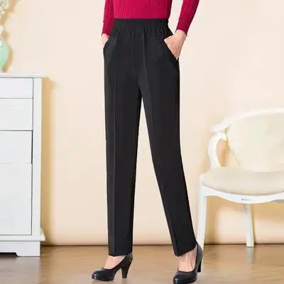 春季新款女裤松紧腰高腰妈妈裤中老年人宽松直筒裤女婆婆裤子批发