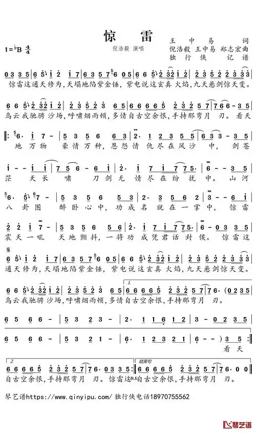 惊雷简谱-倪浩毅歌曲-独行侠曲谱-歌谱网