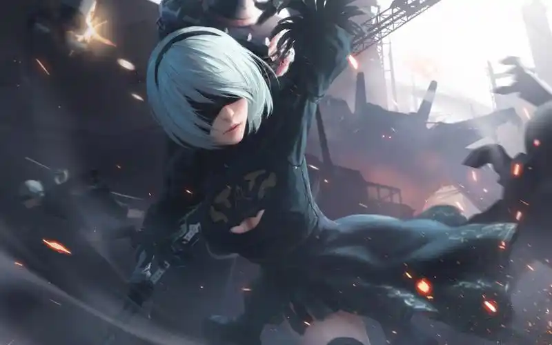 尼尔:机械纪元,女孩,剑,战斗 4k