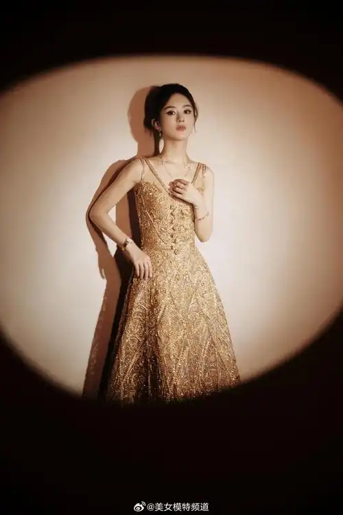 赵丽颖一身高定鎏金镂空礼服裙