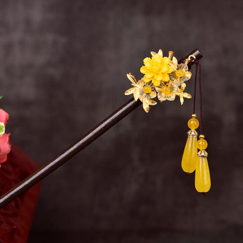 黑檀木发簪女古风发饰盘发木簪流苏步摇簪子琉璃吊坠汉服头饰配饰