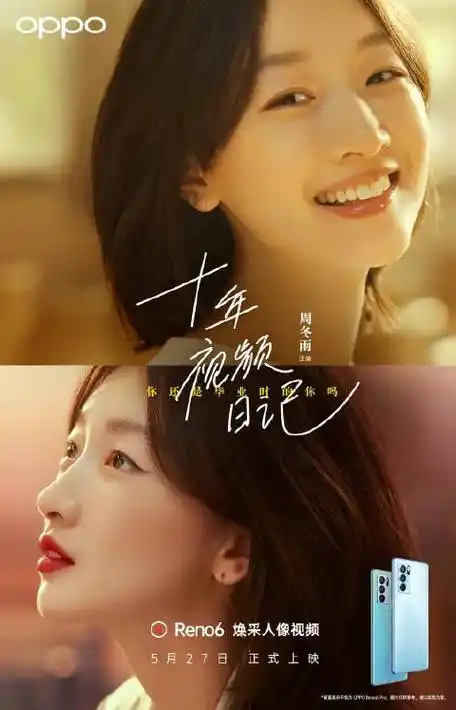 oppo reno6这条广告通过周冬雨用手机记录毕业时,毕业三年,毕业五年和