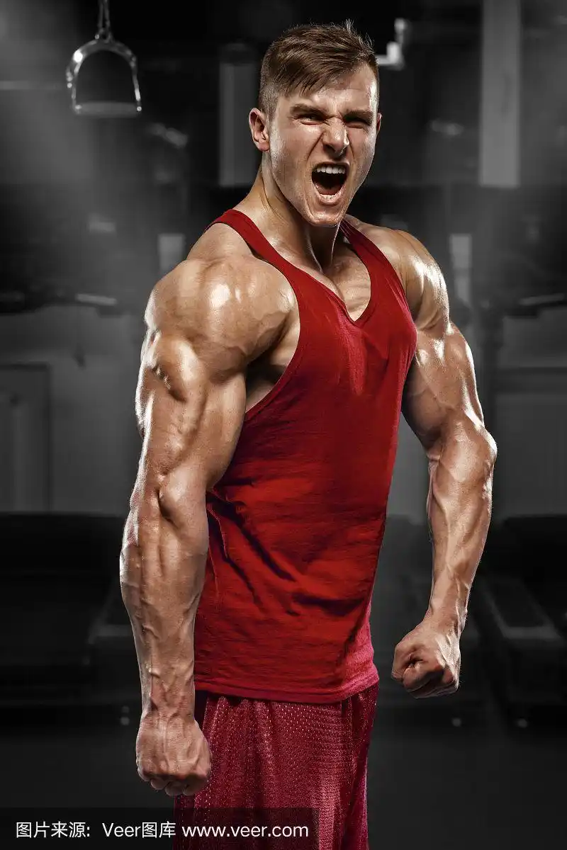 英俊的肌肉男在健身房摆姿势,显示肌肉.强壮的男性,锻炼身体