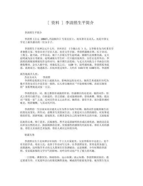 资料李清照生平简介