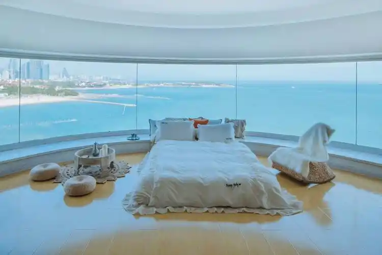 青岛海边的民宿还有270度超大曲面落地窗