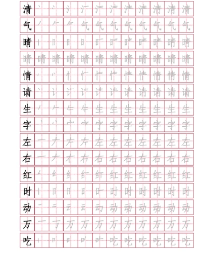 人教部编版小学一年级语文下册写字表田字格版字帖
