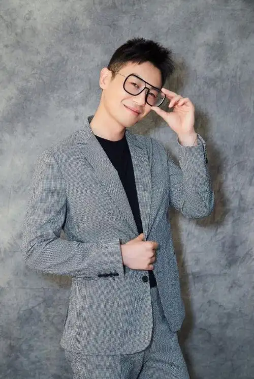 朱亚文蓝色衬衫,细框眼镜,斯文帅气.