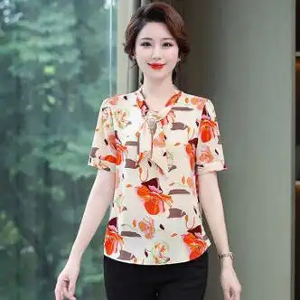 兮迦40岁女人穿的气质女装夏季上衣新款妈妈装雪纺衫短袖小衫洋气50中