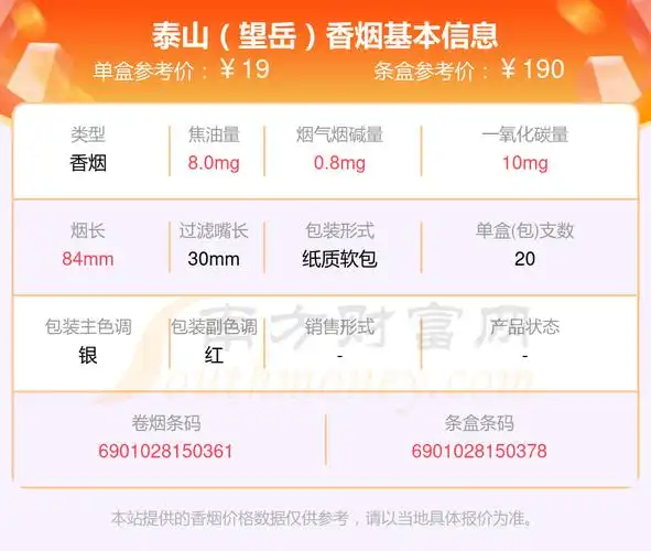 焦油量10mg以下的泰山香烟2024列表一览