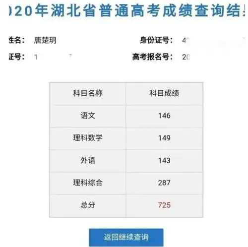 唐楚玥高考成绩查询结果