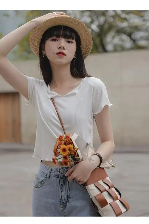 泫雅风短款t恤女夏季欧货高腰露脐修身打底衫热辣短袖爵士舞上衣