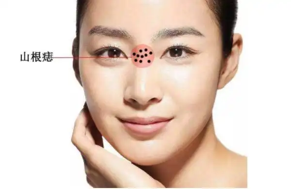 山根是鼻子的根部,两眼之间的位置,正好位于印堂下方.