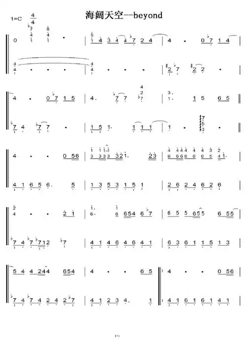 beyond海阔天空简谱,beyond海阔天空歌谱,beyond海阔天空歌词,曲谱