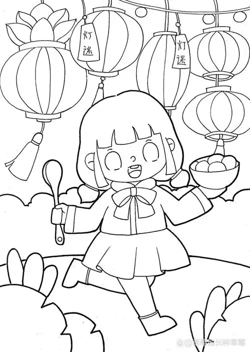 元宵节主题儿童画高清线稿 元宵节主题高清线稿,喜欢的话欢迎留下小