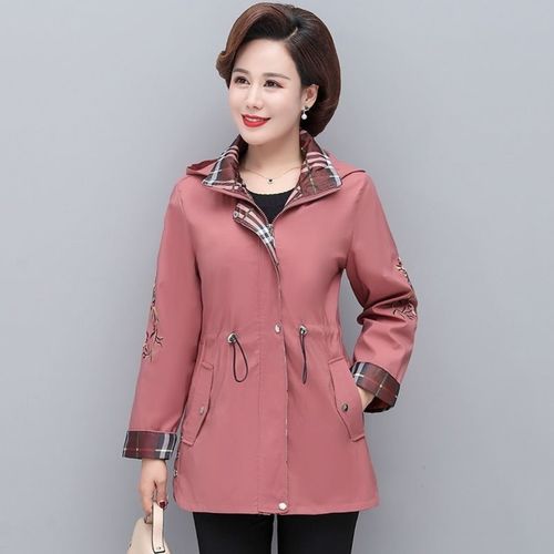新款妈妈春装中长款风衣中老年女装洋气外套中年春秋夹克奶奶上衣风衣