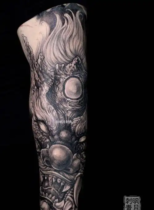 新传统擒龙纹身图片手臂手部新传统龙花臂小鬼纹身图案