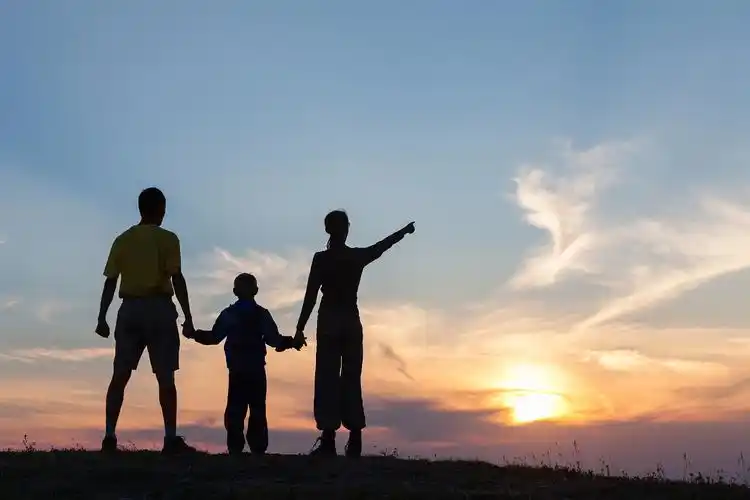 夕阳下的一家三口