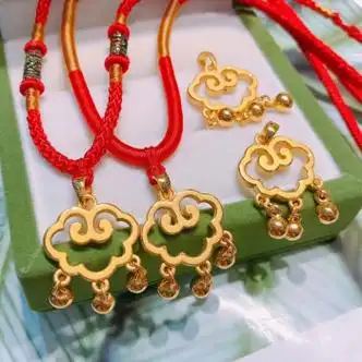 zhio祥云如意吊坠黄金长命锁大人平安锁项链红绳编织足金宝宝满月金饰