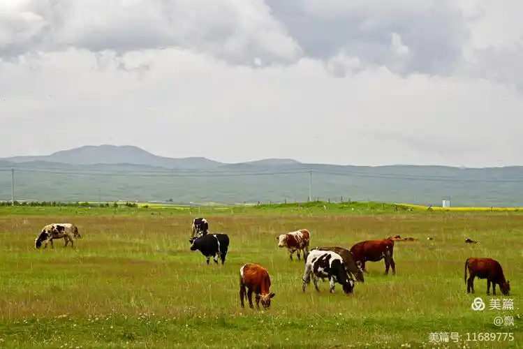牛羊成群悠闲自得的在草原上吃草