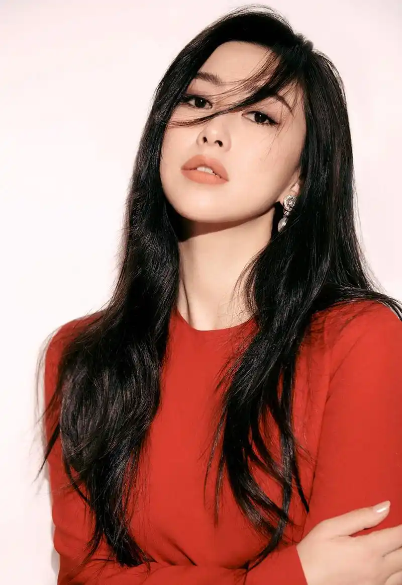 朱珠红色连衣裙时尚写真
