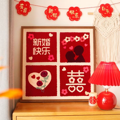 喜字戳戳绣手工diyo材料包刺绣初学者制作新婚快乐毛线画结婚礼物
