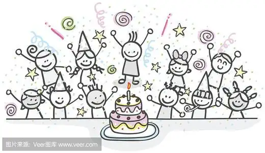 小男生小女生好朋友一起庆祝生日快乐要如何画?生日派对简笔画大全