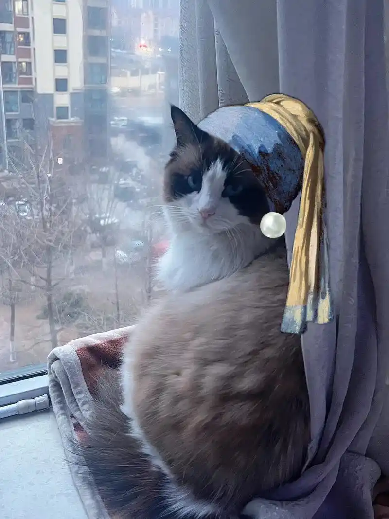戴珍珠耳环的少猫.#带珍珠耳环的少女 #戴珍珠耳环的萌宠 #
