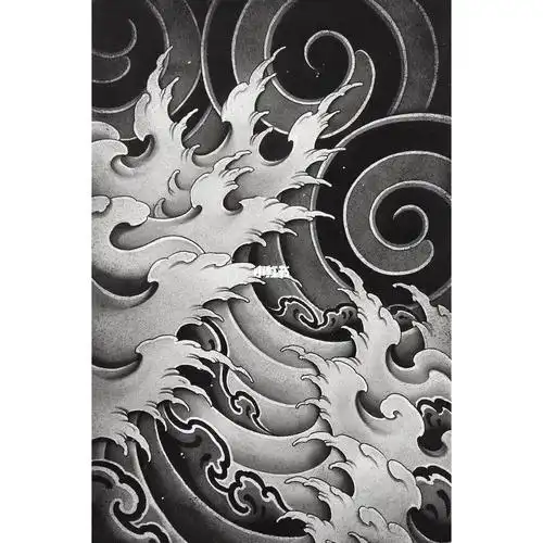 传统黑灰浪臂手稿分享_百世广场攻略_纹身_樱花_花臂_水浪花臂纹身_美