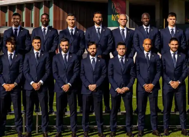 葡萄牙男模队拍西装全家福,c罗将c位让给b费b席自己站第2排