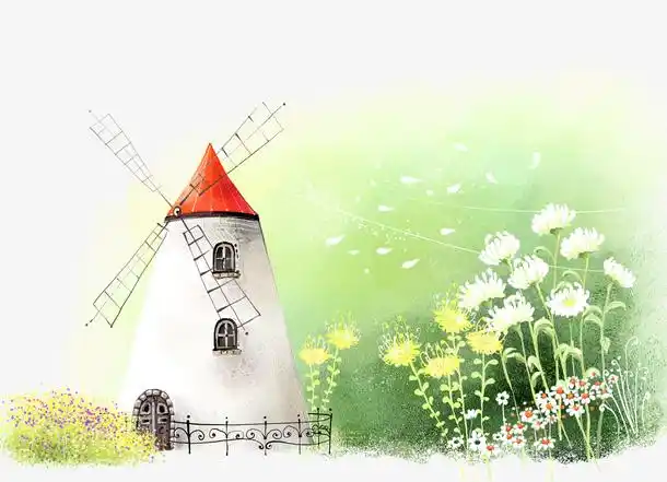手绘风车房子