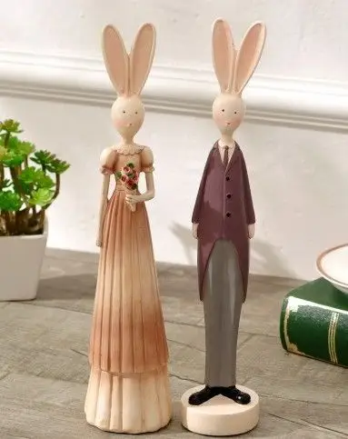 可爱公主王子兔摆件一对
