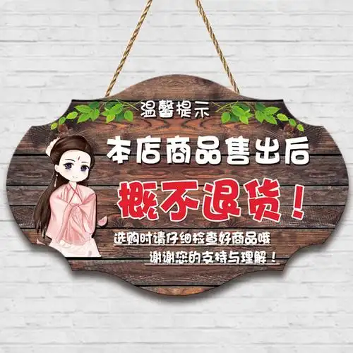服装店店铺logo定做装饰售出商品概不退换温馨提示标语商场禁止请勿