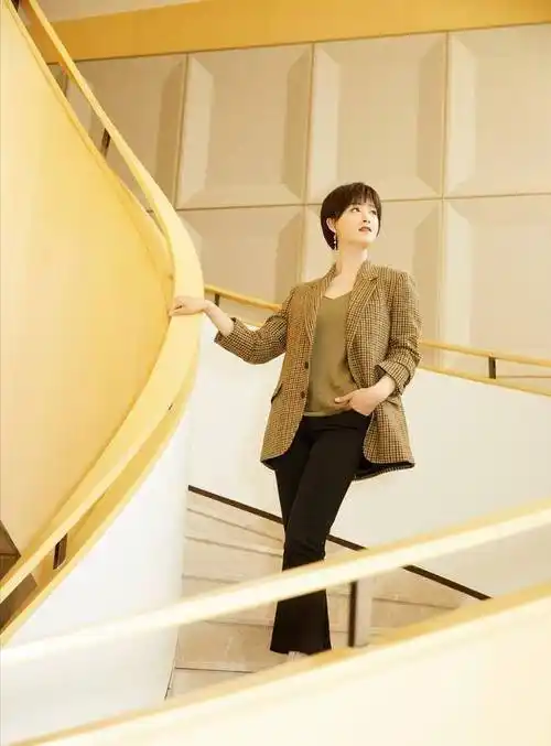 蒋欣真是微胖女神剪短发配格纹西装好有气质照样御姐范儿十足