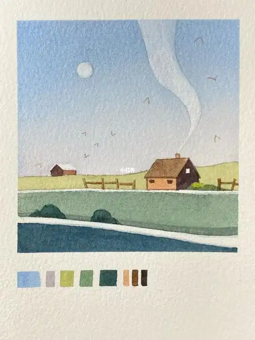 水彩入门风景简约配色清新郊外图文教程