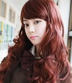 女生齐刘海大卷烫发发型正在梳齐刘海长直发的女生,今年秋天毫不犹豫