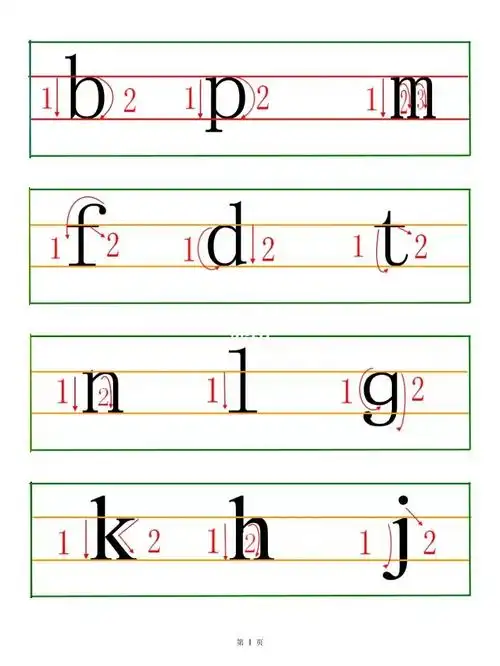 166认识四线三格,让小朋友们自己数一数拼音格,有几条线,几个格子