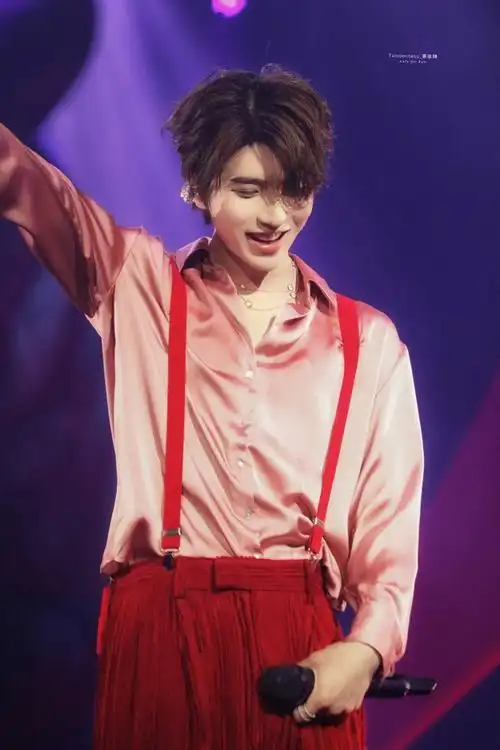 蔡徐坤戴耳环了##蔡徐坤卷毛粉色套装
