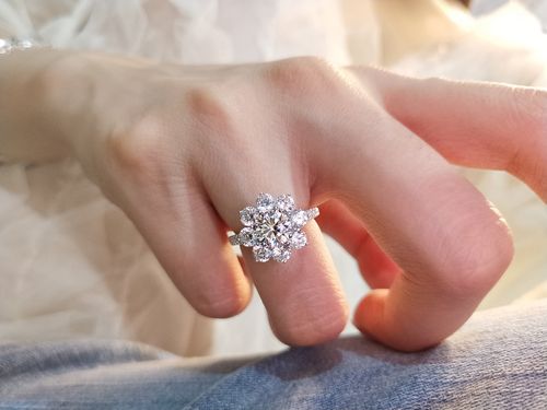 喜钻铂金钻戒女时尚花型钻石戒指砖石真钻定制新品送女友礼物