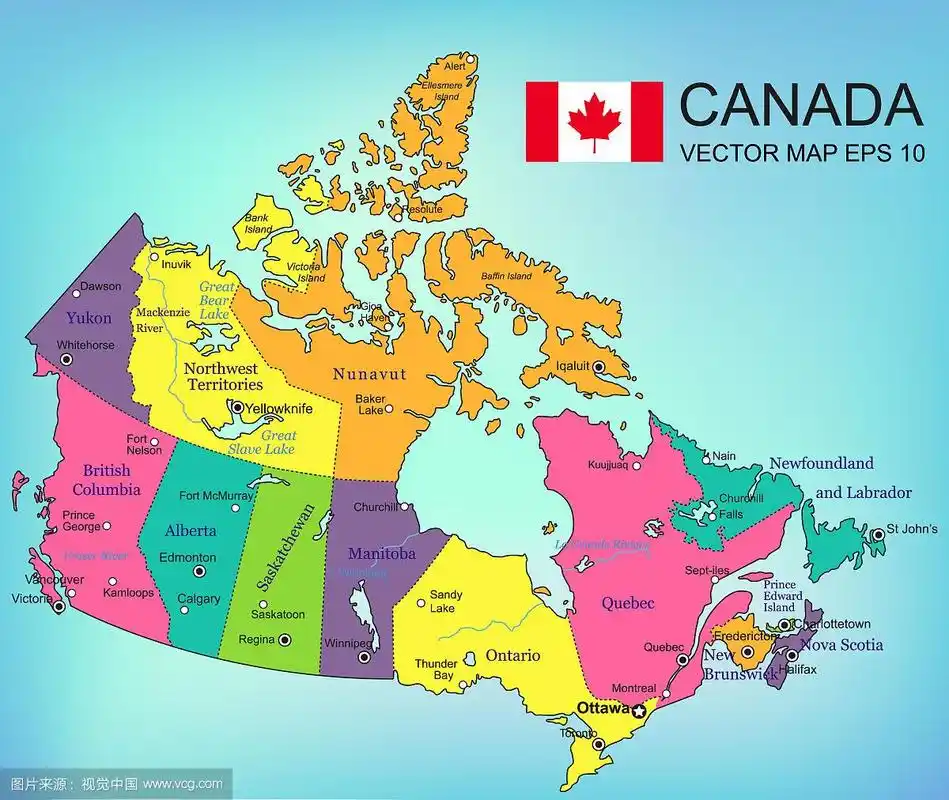 加拿大地图和行政区域地图中文版
