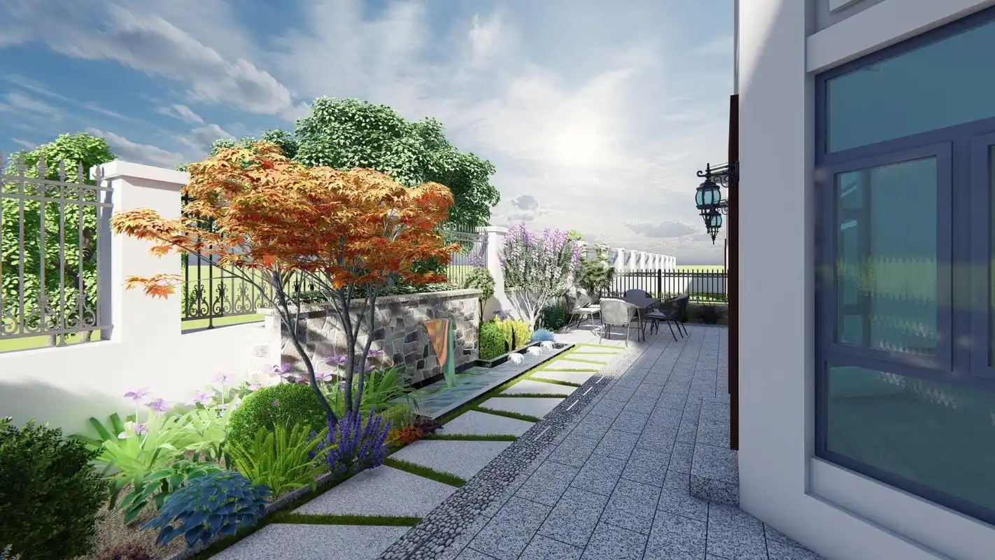 简约时尚现代风别墅庭院花园实景图-成都一方园林设计