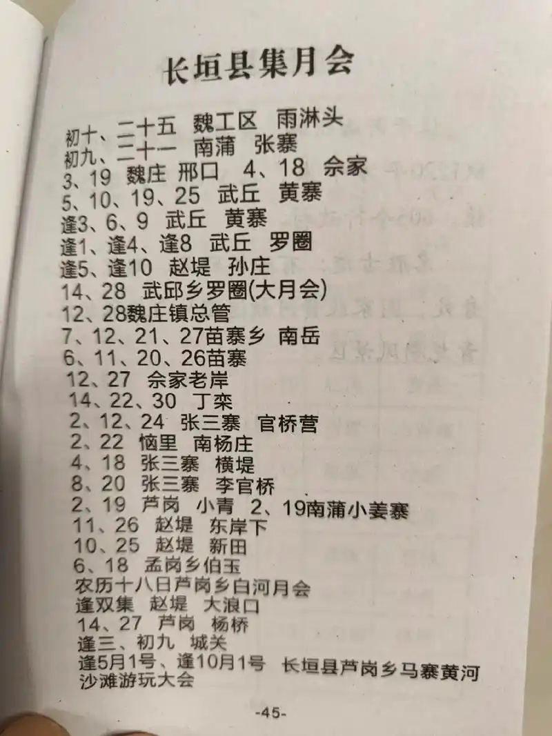 新乡市延津县/封丘县/长垣市月会谱