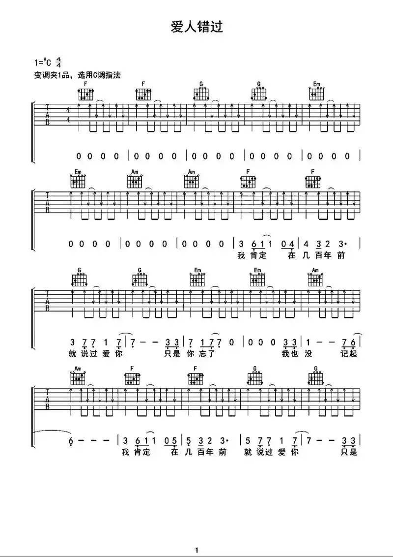 小幸运吉他谱 田馥甄 c调简化版