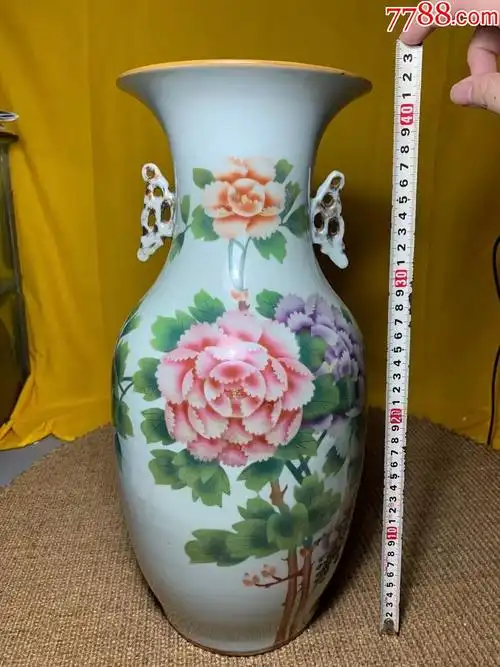 晚清民国名家邹和胜作品,粉彩牡丹花双耳花瓶,高42公分,特价-价格