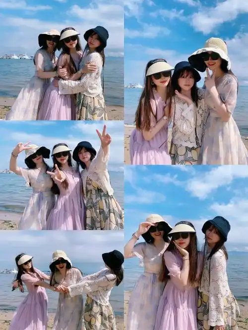 三人姐妹海边拍照合集