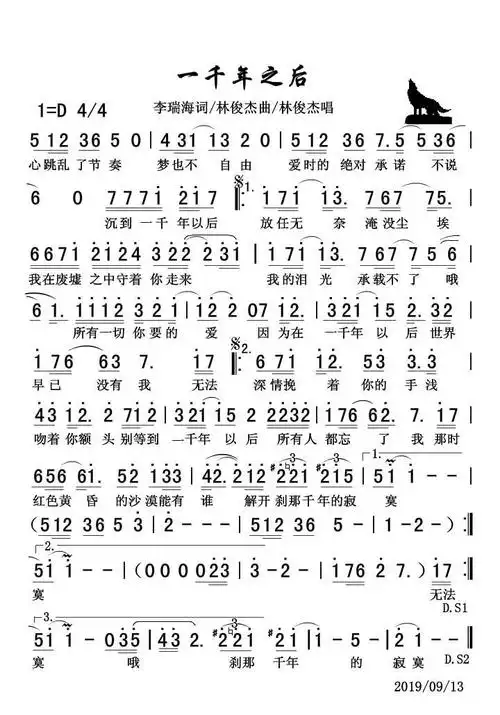 求一千年以后的简谱,不要发网站的