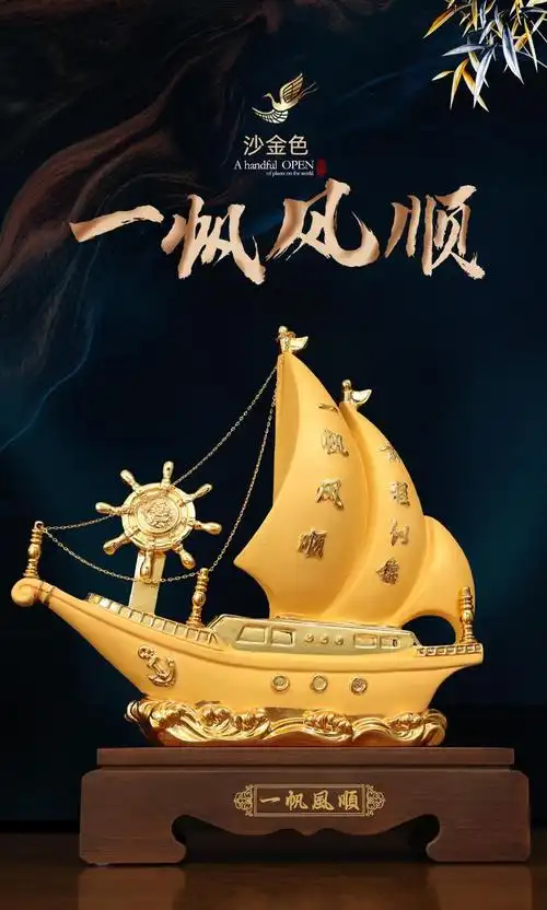 敦乔绒沙金一帆风顺帆船摆件满载而归黄金商务礼品开业乔迁礼物