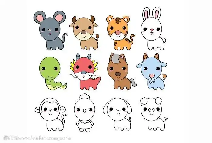 十二生肖动漫q版素材.#创意美术 #动漫人物绘画 #临摹卡 - 抖音