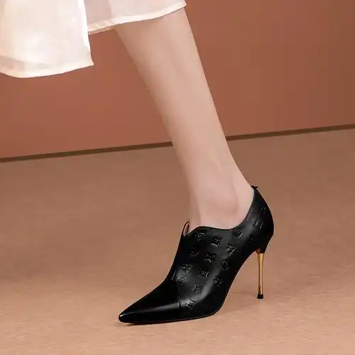 mdesl902168新款真皮女鞋尖头细高跟鞋金属懒人通勤鞋