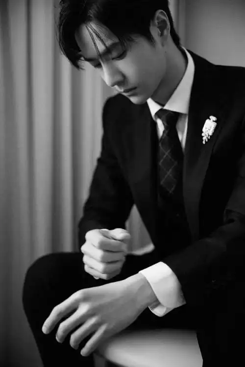 王一博格纹领带造型##王一博黑西装格纹领带