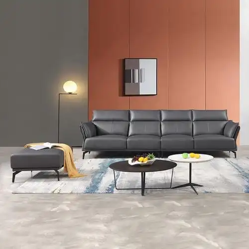 【摩俪莎】时尚小户型客厅4 脚踏组合意式极简高档真皮沙发